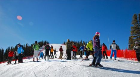 About 200 season pass holders who entereed an online drawing joined the racers for a speed center preview session on a classic Colorado bluebird day. The happy crowd included several families with kids who got to play hooky for the day.
