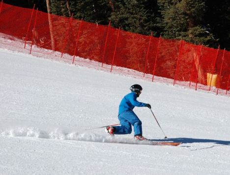 carving high speed turns on the U.S. Ski Team Speed Center at Copper Mountain.